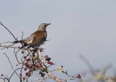 Getting cold on the moor and with none to few insects about, birds like Meadow Pipits where scarce. Berries still about and flocks of Starling and Fieldfares in good numbers with Blackbird, Song and Mistle Thrushes, Great and Blue Tits, Robin, Dunnock, Chaffinch and Wren around these trees and bushes.