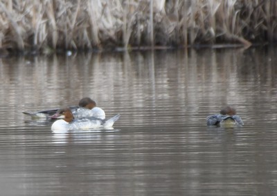 All the feeding had brought in Mallards, Mallard X, Tufted, Mute Swans, Moorhen and Coots. No sign of any Mandarin's at this point but you could see the Gooseanders x3 sat asleep in the middle of the lake, I walked around trying to get a better view and managed to get some sort of picture from the hide.